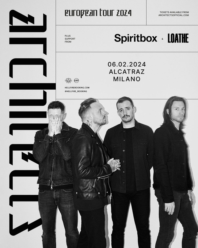 Dopo le date estive al fianco dei Metallica, gli Architects sono di ritorno in Italia più forti che mai, accompagnati da altre due band stratosferiche: Spiritbox e Loathe. Non perdetevi la loro unica parentesi italiana, sarà la data dell’anno.