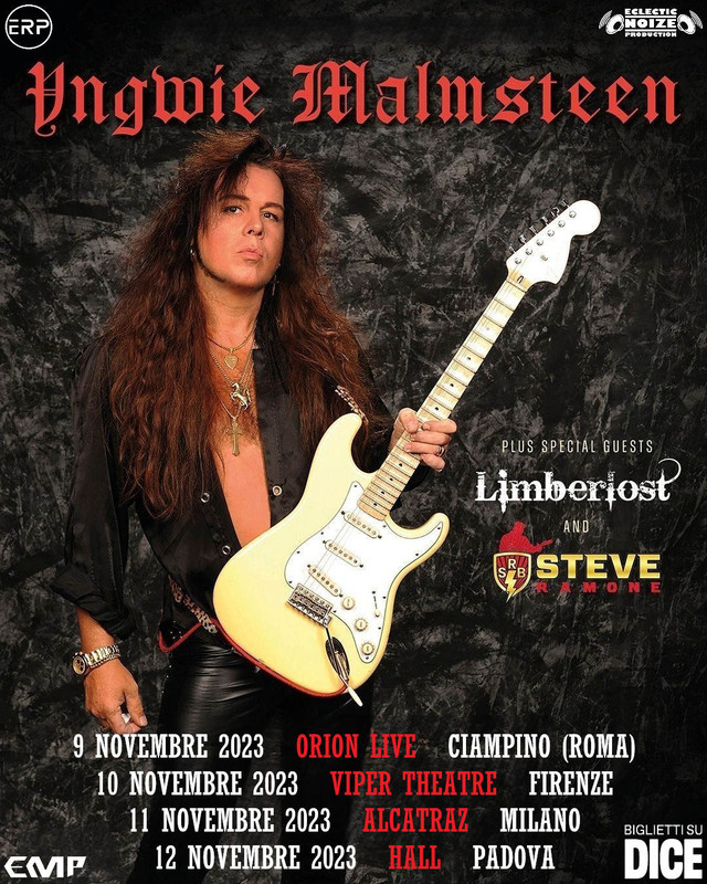 Dopo vent’anni di assenza in Italia, torna il virtuoso guitar hero Yngwie Malmsteen per quattro imperdibili appuntamenti. Il Maestro sarà accompagnato da full band e riproporrà in sede live i maggiori successi tratti da Rising Force, Trilogy e altri dischi, tra cui l’ultima fatica Parabellum.